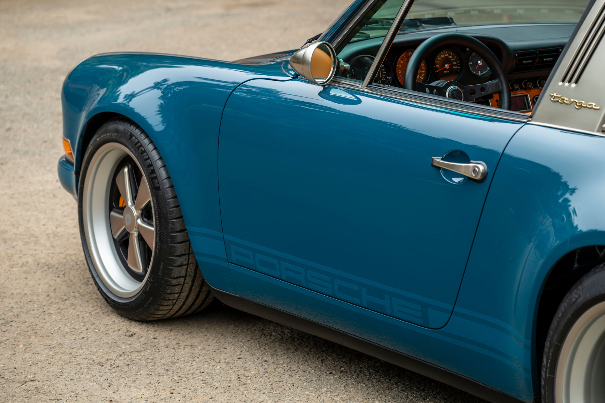 All'interno, la vettura è dotata di sedili a guscio in carbonio, tunnel centrale e battitacco verniciati in Resistance Blue, dettagli in nichel e il sistema multimediale Porsche Classic Navigation.
